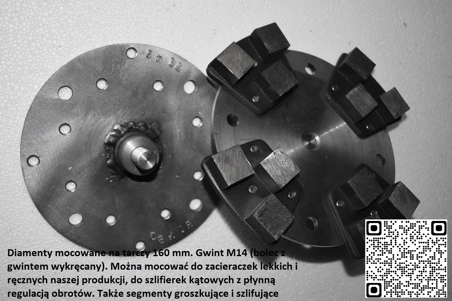 - Tarcza fi 160 mm, nierdzewna do mocowania 4 diamentów, szczotek, groszkowników. Można mocować do szlifierki kątowej, lekkiej i ręcznej – 350,00 zł