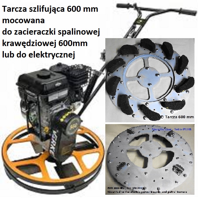 - Tarcza do nerek, 600 mm, kpl śrub, bez nerek – 1220,00 zł (można mocować do zacieraczki 600 spalinowej lub elektrycznej)