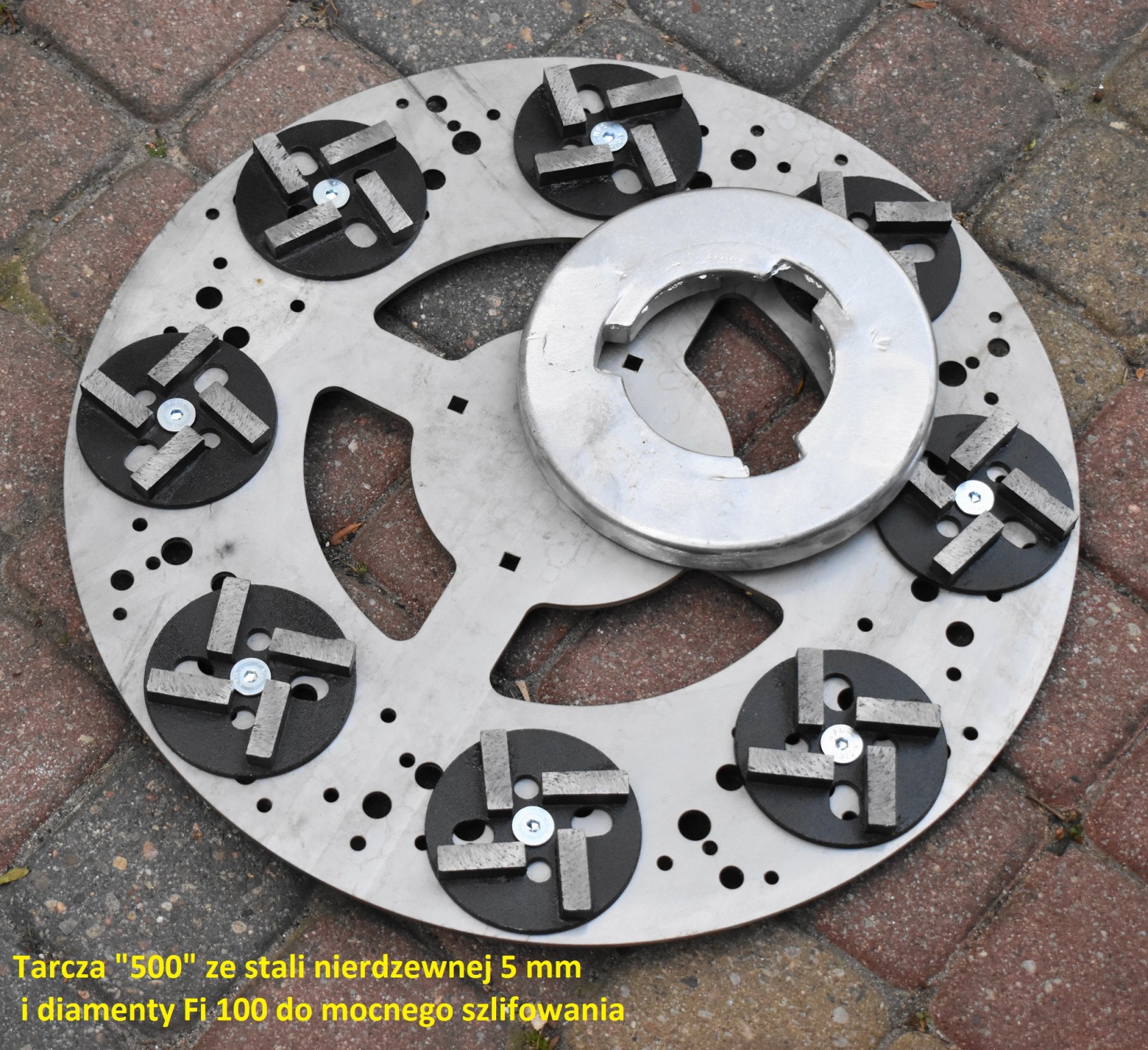 - Tarcza fi 215 mm, nierdzewna do mocowania 6 diamentów, szczotek, groszkowników. Można mocować do szlifierki kątowej, lekkiej i ręcznej – 400,00 zł